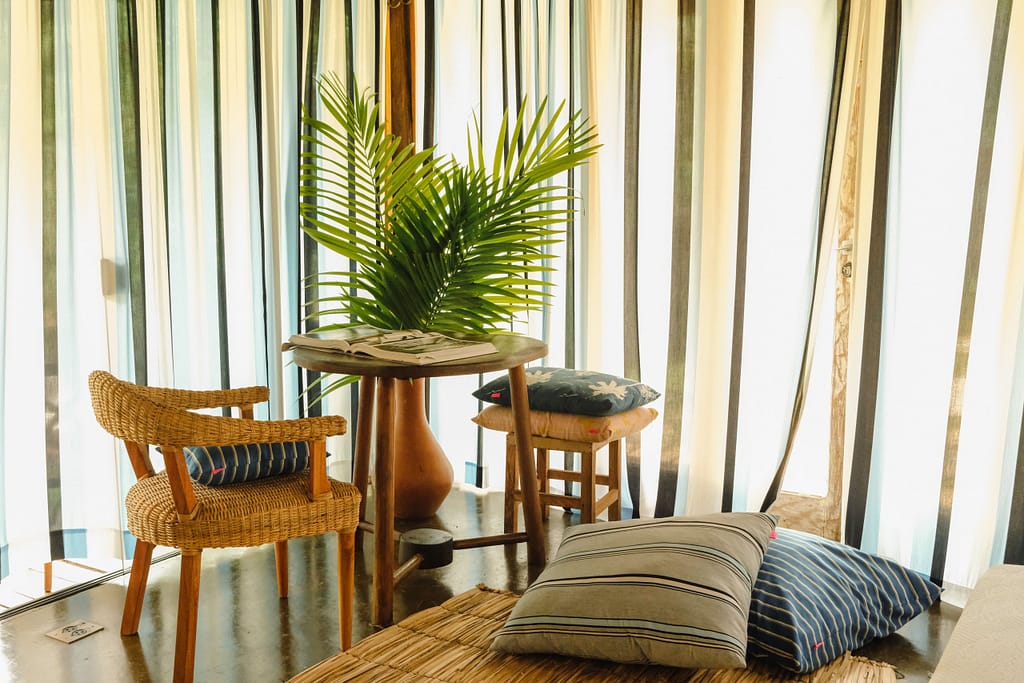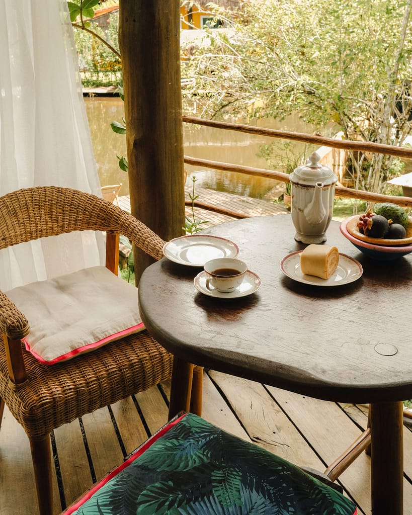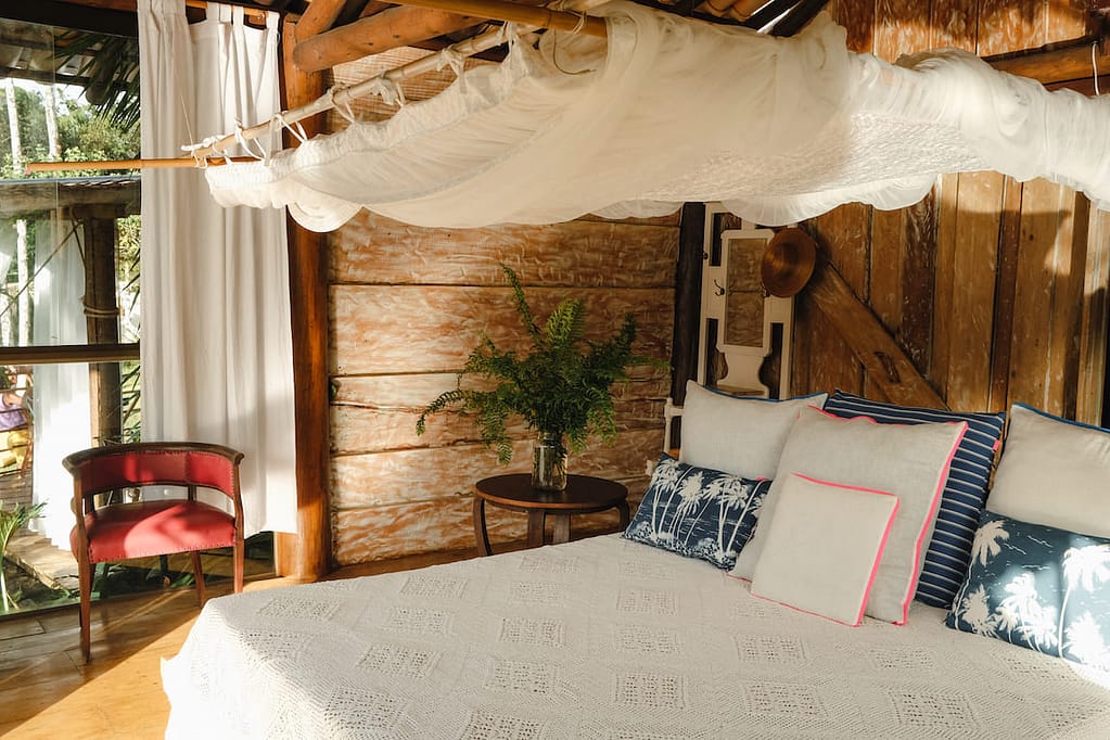 The cabin celebrates local craftsmanship, with handmade decor and furnishings that honor the traditions of Bahia. Each piece contributes to a setting that feels deeply rooted in place, designed to invite guests into a sensory experience of Bahia’s culture and nature.
