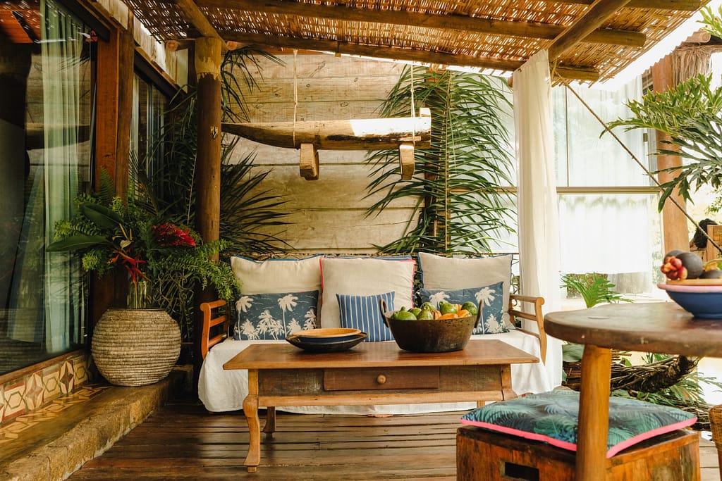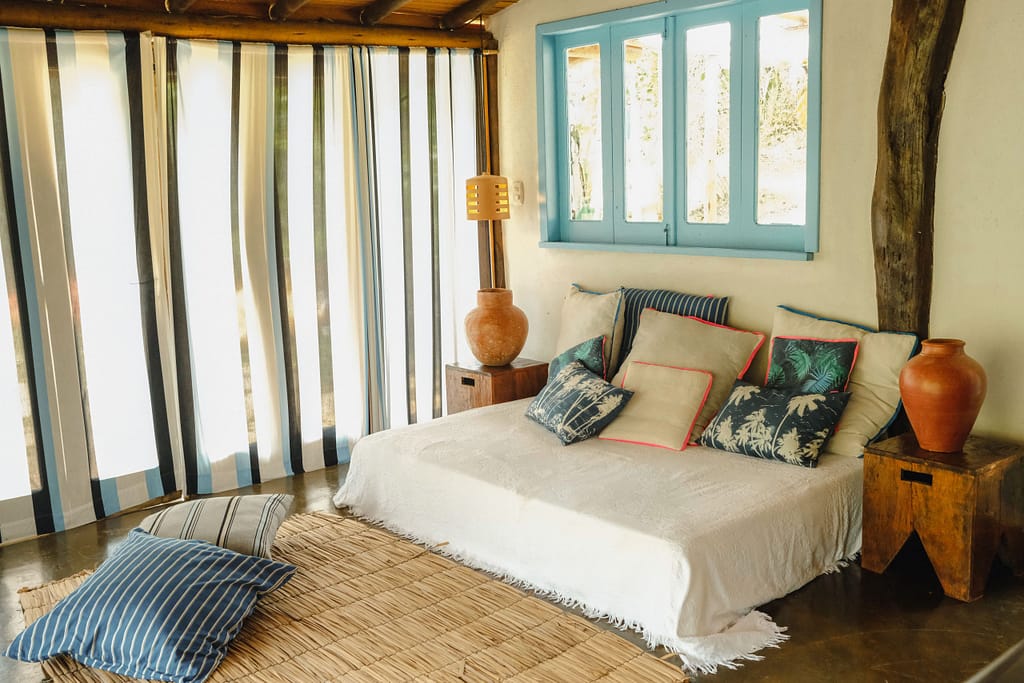 With large windows and open spaces, this cabin seamlessly blends indoors and outdoors, allowing natural light to highlight rich fabrics and textures that echo Bahia’s vibrant landscape.